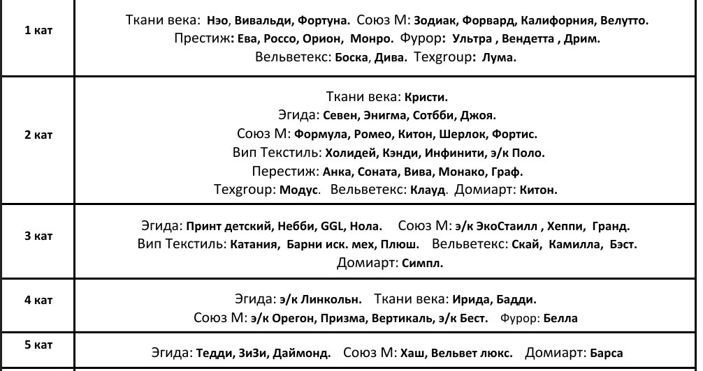 КАТЕГОРИИ МЕБЕЛЬНЫХ ТКАНЕЙ.