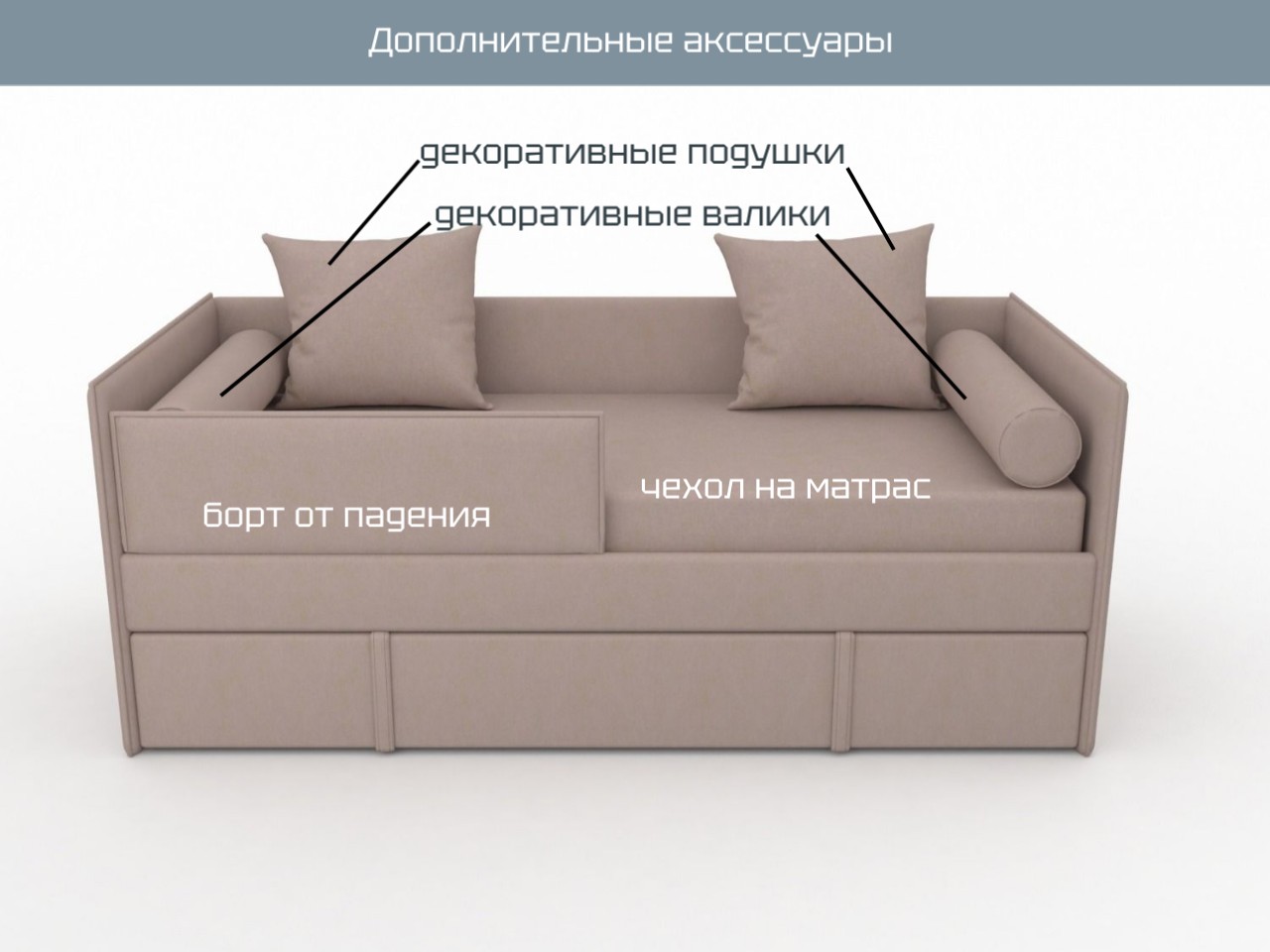 ЧЕХОЛ чехол на матрас, сшитый из ткани самой кровати превратит ее полноценный диван на вид. чехол фиксируется на матрасе угловыми резинками. Подходит для матрасов 13-15 см