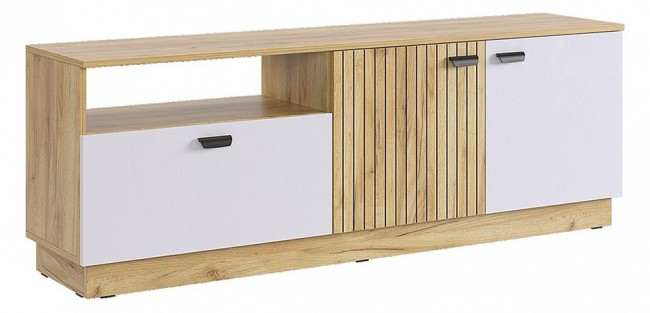 Модное и стильное решение- тумба 'Моди'. Ее основное преимущество- небольшая глубина (350 мм), но несмотря на это, в ней поместятся много полезных и ценных вещей. Тумба 'Моди'- это вместительный выдвижной ящик, большой отсек с полкой и открытая ниша для мелочей, лучшее решение для гостиной и других комнат. Принтерный рисунок на фасаде в виде тонких вертикальных полос- актуальное решение в современном интерьере. Принт- устойчив к истиранию и ультрафиолету. Тумба собирается в том виде, что нарисована на картинке. Тумба отлично сочетается со всеми модулями гостиной 'Моди', а особенно с надстройкой 'Моди'.
